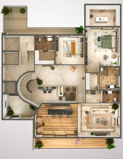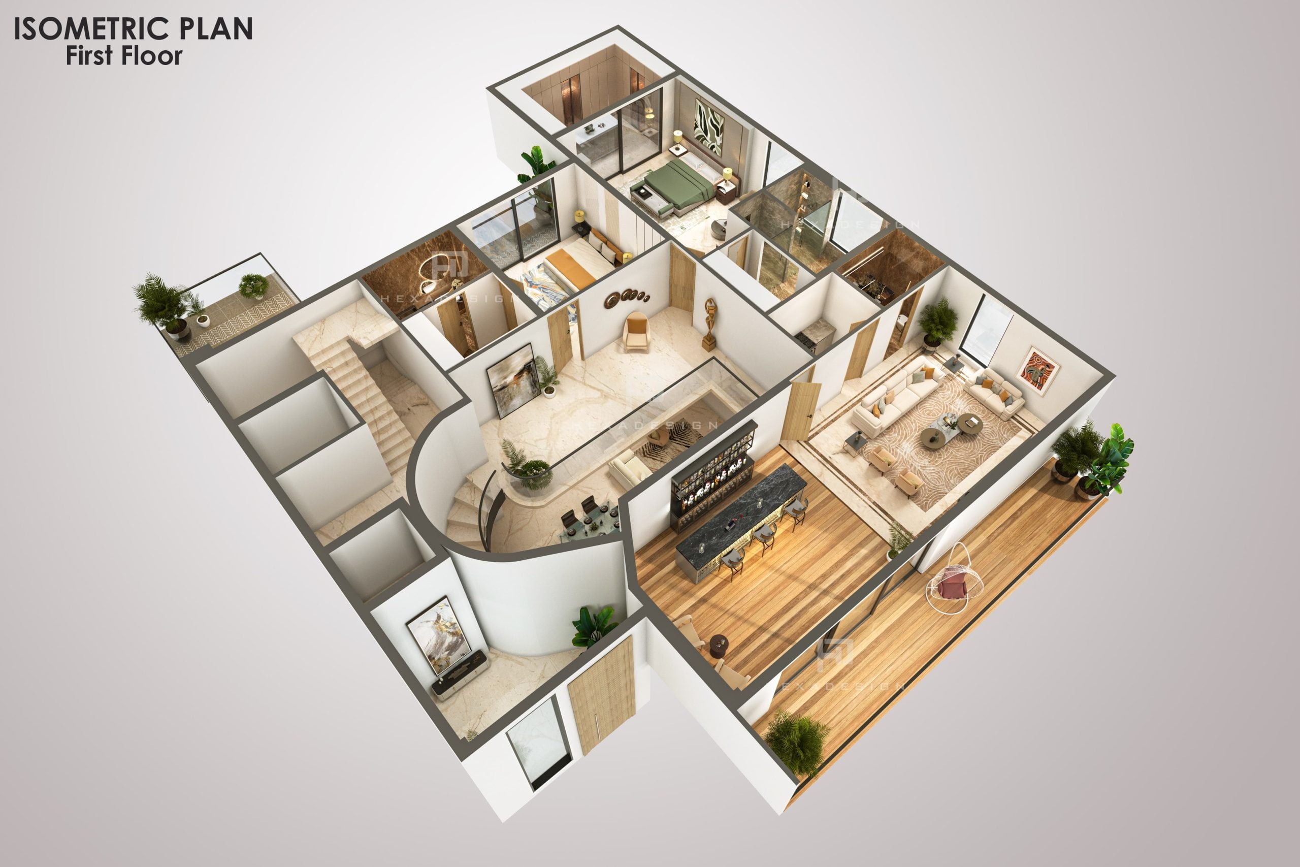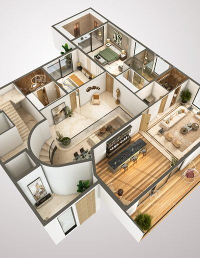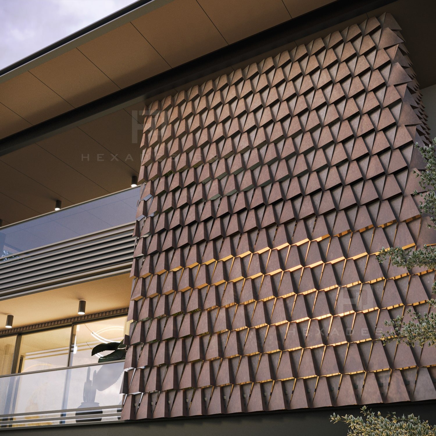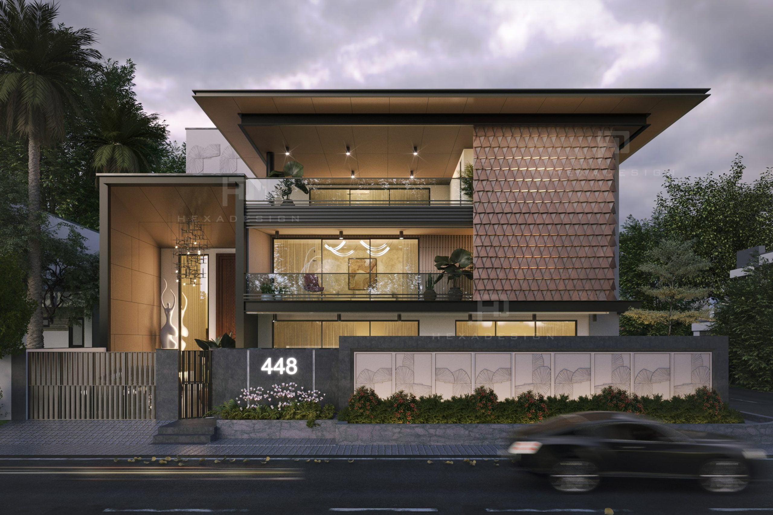 The modern elevation seamlessly blends innovation with aesthetics, prominently featuring zinc panels that elevate the structure to new heights of sophistication. The choice of zinc not only adds a distinct metallic allure but also provides durability and resilience against the elements. The panels are strategically placed to create a sense of rhythm and balance, enhancing the overall visual appeal.